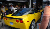 | The ZR1's basic stats: * All-new LS9 supercharged 6.2L V-8 targeted at producing at least 100 horsepower per liter, or 620 horsepower (462 kW), and approximately 595 lb.-ft. of torque (823 Nm) * Six-speed, close-ratio, race-hardened manual transmission * New, high-capacity dual-disc clutch * Higher-capacity and specific-diameter axle half-shafts; enhanced torque tube * Specific suspension tuning provides more than 1g cornering grip * Twenty-spoke 19-inch front and 20-inch rear wheels * Michelin Pilot Sport 2 tires - P285/30ZR19 in front and P335/25ZR20 in the rear - developed specifically for the ZR1 * Standard carbon-ceramic, drilled disc brake rotors - 15.5-inch-diameter (394-mm) in the front and 15-inch-diameter (380-mm) in the rear * Larger brake calipers with substantially increased pad area * Standard Magnetic Selective Ride Control with track-level suspension * Wider, carbon-fiber front fenders with ZR1-specific dual vents * Carbon-fiber hood with a raised, polycarbonate window - offering a view of the intercooler below it * Carbon-fiber roof panel, roof bow, front fascia splitter and rocker moldings with clear-coated, exposed carbon-fiber weave * ZR1-specific full-width rear spoiler with raised outboard sections * Specific gauge cluster with boost gauge (also displayed on the head-up display) and 220-mph (370 km/h) speedometer readout * Only two options: chrome wheels and a "luxury" package * Curb weight of approximately 3,350 pounds (1,519 kg) The specialized components of the new ZR1 work harmoniously to deliver the most powerful and fastest automobile ever produced by General Motors. Performance estimates will be announced closer to vehicle's summer 2008 launch. "Preliminary testing shows the ZR1 builds on the highly respected Corvette Z06 in every performance category, from acceleration and braking, to cornering grip and top speed," said Peper. "It all boils down to the power-to-weight ratio and the ZR1's is exceptional - better than the Porsche 911 GT2, the Ferrari 599 and even the Lamborghini LP640. In fact, the ZR1 is expected to be the first production Corvette to achieve a top speed of at least 200 mph."  Supercharged LS9 Engine The new LS9 6.2L small-block engine is the power plant the supports the ZR1's performance capability. The enabler of the LS9's performance and refinement is a large, positive-displacement Roots-type supercharger with a new, four-lobe rotor design. It is augmented with an integrated charge cooling system that reduces inlet air temperature for maximum performance. A sixth-generation supercharger developed by Eaton helps the LS9 make big power and torque at lower rpm and carries it in a wide arc to 6,600 rpm, as it pushes enough air to help the engine maintain power through the upper levels of the rpm band - the area where supercharged performance tends to diminish. Heavy-duty and lightweight reciprocating components enable the engine's confident high-rpm performance. The LS9 is hand-assembled at GM's Performance Build Center, in Wixom, Mich., and incorporates specialty processes typically seen in racing engines to produce a highly refined and precise product. For example, cast iron cylinder liners are inserted in the aluminum block and are finish-bored and honed with a deck plate installed. The deck plate simulates the pressure and minute dimensional variances applied to the block when the cylinder heads are installed, ensuring a higher degree of accuracy that promotes maximum cylinder head sealing, piston ring fit and overall engine performance. Transmission and Axle The LS9 engine is backed by a new, stronger six-speed manual transmission and a twin-disc clutch that provide exceptional clamping power, while maintaining an easy clutch effort. ZR1-specific gearing in the transmission provides a steep first-gear ratio that helps launch the car, and top speed is achieved in sixth gear - a change from the fifth-gear top-speed run-outs in the manual-transmission Corvette and Corvette Z06. As the term implies, the twin-disc clutch system employs a pair of discs, which spreads out the engine's torque load over a wider area. This enables tremendous clamping power when the clutch is engaged, while also helping to dissipate heat better and extend the life of the clutch. The twin-disc clutch system also contributes to the ZR1's exceptional driving quality, with smooth and easy shifting. The twin-disc system's design enables a 25-percent reduction in inertia, thanks to smaller, 260-mm plates, corresponding to a pedal effort that is similar to the Corvette Z06's 290-mm single-disc system. The rear axle also is stronger in the ZR1 and features asymmetrical axle-shaft diameters that were developed after careful testing to provide optimal torque management. The axles are also mounted on a more horizontal plane that correlates with the wider width of the rear wheels and tires.  Brakes, Wheels and Tires Commensurate with the ZR1's engine output is the braking system, which is headlined by carbon-ceramic brake rotors. Found on only a few exotics and more expensive supercars, carbon-ceramic brake rotors are made of a carbon-fiber-reinforced ceramic silicon carbide material . Their advantage comes in low mass and resistance to wear and heat. In fact, the rotors should never show any corrosion or require replacement for the life of the vehicle, when used in normal driving. The vented and cross-drilled rotors on the ZR1 measure 15.5 inches (394 mm) in diameter in the front and 15 inches (380 mm) in diameter in the rear - making them among the largest carbon-ceramic rotors available on any production vehicle. Clamping down on the high-tech rotors are six-piston front calipers and four-piston rear calipers, each painted a ZR1-exclusive blue. The front pads are equivalent in size to the largest on any production car with a single-pad design - double that of the Corvette Z06's 70-sq.-cm. front pads. The brakes are visible through the ZR1's exclusive wheels: 20-spoke alloy